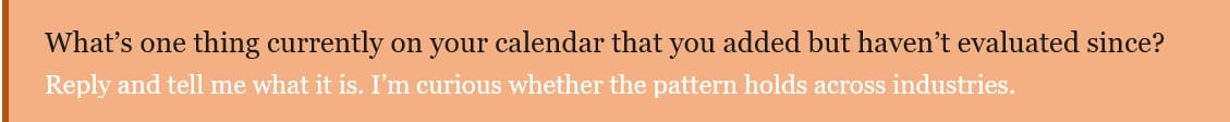 What’s one thing currently on your calendar that you added but haven’t evaluated since? Not to remove it-just to look at it honestly. That small act of review is usually enough.